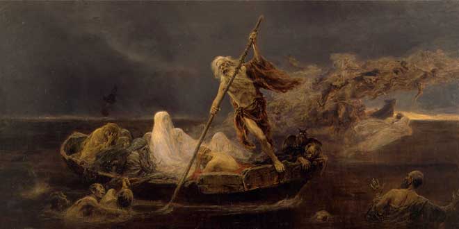 Els grecs sempre van crear divinitats per explicar els fenòmens que passaven en el món. La mitologia grega va crear figures com la de Caront per explicar què passava quan una persona es moria i com la seva ànima aconseguia passar a altre món. Tot i que les religions i les creences van evolucionant el pas dels segles, aquest personatge mitològic encara és la representació de la qual forma part de moltes obres d'art.